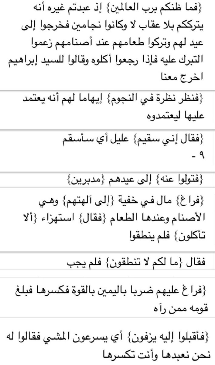 معا ضد تجار الدين On Twitter فنظر نظرة في النجوم فقال إني سقيم فتولوا عنه مدبرين فراغ إلى آلهتهم فقال ألا تأكلون ما لكم لا تنطقون فراغ عليهم ضربا باليمين Https T Co Ozfxsa1mcb