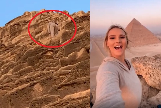 بعد تصوير فيلم إباحي على قمة هرم خوفو العارضة العارية تغدر بالأمن المصري وتتسل ق أحد الأهرام متابعات