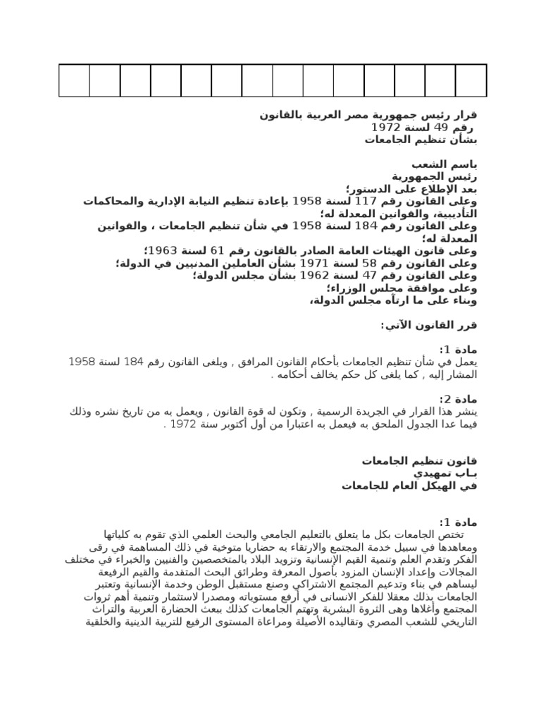 رقم 49 لسنة 1972 بشأن تنظيم الجامعات المصرية