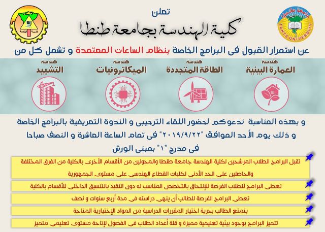 اليوم هندسة طنطا تعقد ندوة تعريفية عن البرامج الخاصة بنظام الساعات المعتمدة محافظات