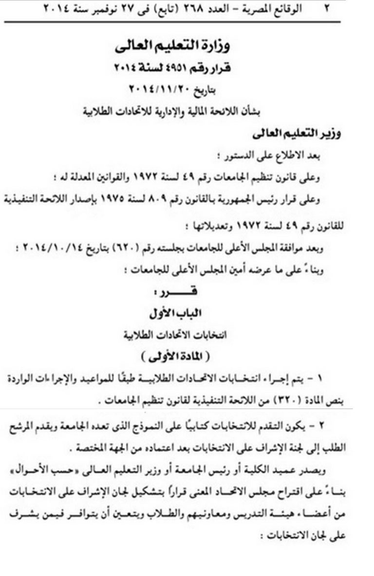 اللائحة الطلابية المصرية 2014