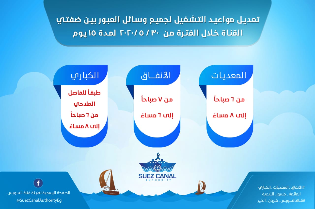 Sca قناة السويس تقرر تعديل مواعيد تشغيل المعديات والأنفاق